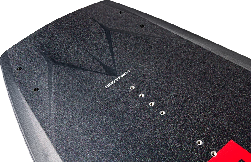 The chameleon of conforming wakeboards. This board has the rare trait of adapting to you, regardless of your style or ability. We took one of our best-selling all-purpose series that rides without stereotypes and made it lighter, delivering more feedback, and noticeably softer landings. The District, with its hybrid rocker, ranges from smooth/low maintenance turns to wide open high-speed cuts. With fast, predictable takeoffs, to explosive wake to wake jumps, this is a series that truly covers the spectrum. Riders that approach the wake flat into the wake will notice a strong, explosive 3-stage lift. If you approach the wake while on rail you will notice a smooth, blended rocker line with an uninterrupted fast take-off and landing. Riders who tend to distribute their weight evenly will experience a freeride, floaty feel when they initiate turns. On the flipside, riders can experience hairpin turns with quick edge transitions if they shift their weight to the tail of the board.
